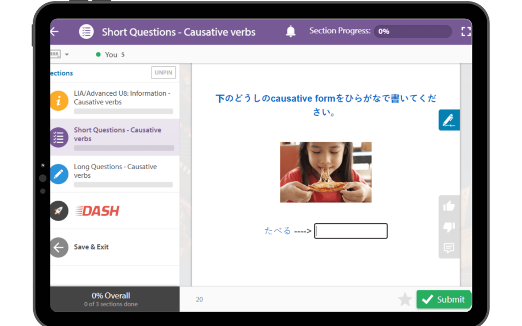 Parents of young people learning independently at home can also take advantage of the EP Japanese platform. EP smart lessons are designed to teach students the vocabulary and then offer practice of key skills to reinforce this. Students can work through these smart lessons independently and receive automatic feedback on their progress. The instant feedback provided by EP automatic marking ensures students are able to monitor their own progress through vital feedback and guidance and then practice the different skills as needed.